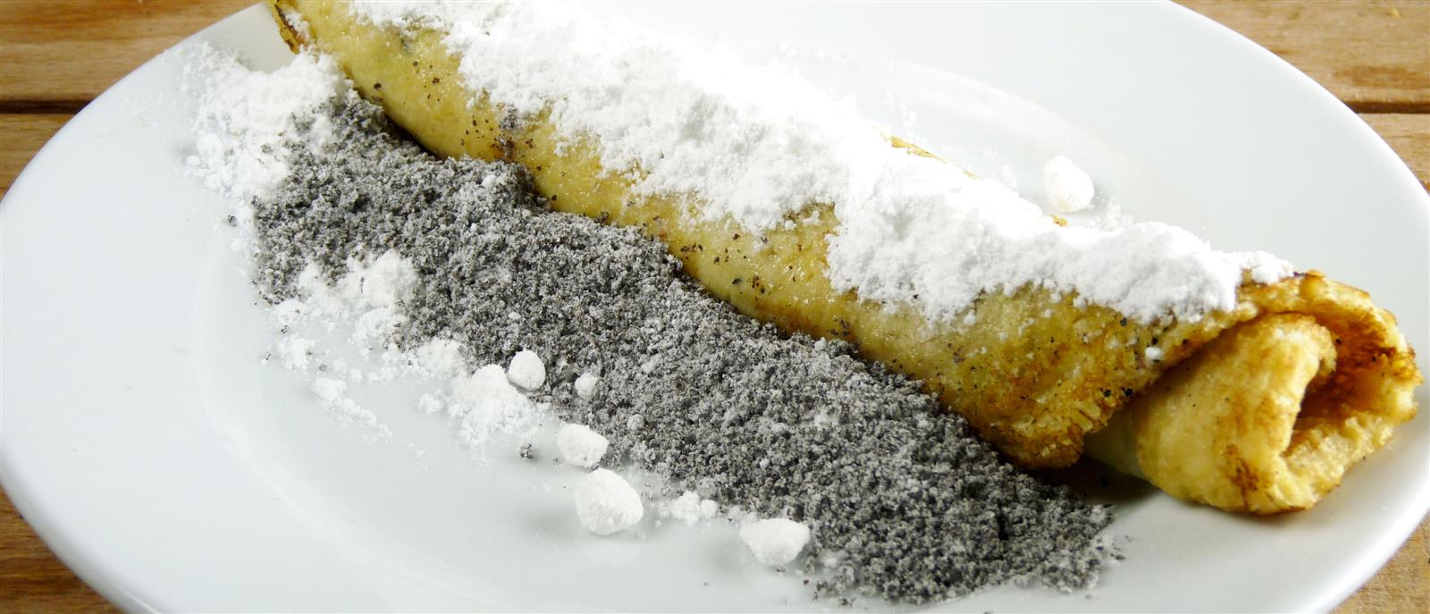 Őrölt mákkal és porcukorral. Glutént tartalmaz. Tojást tartalmaz. Hozzáadott cukrot tartalmaz.
